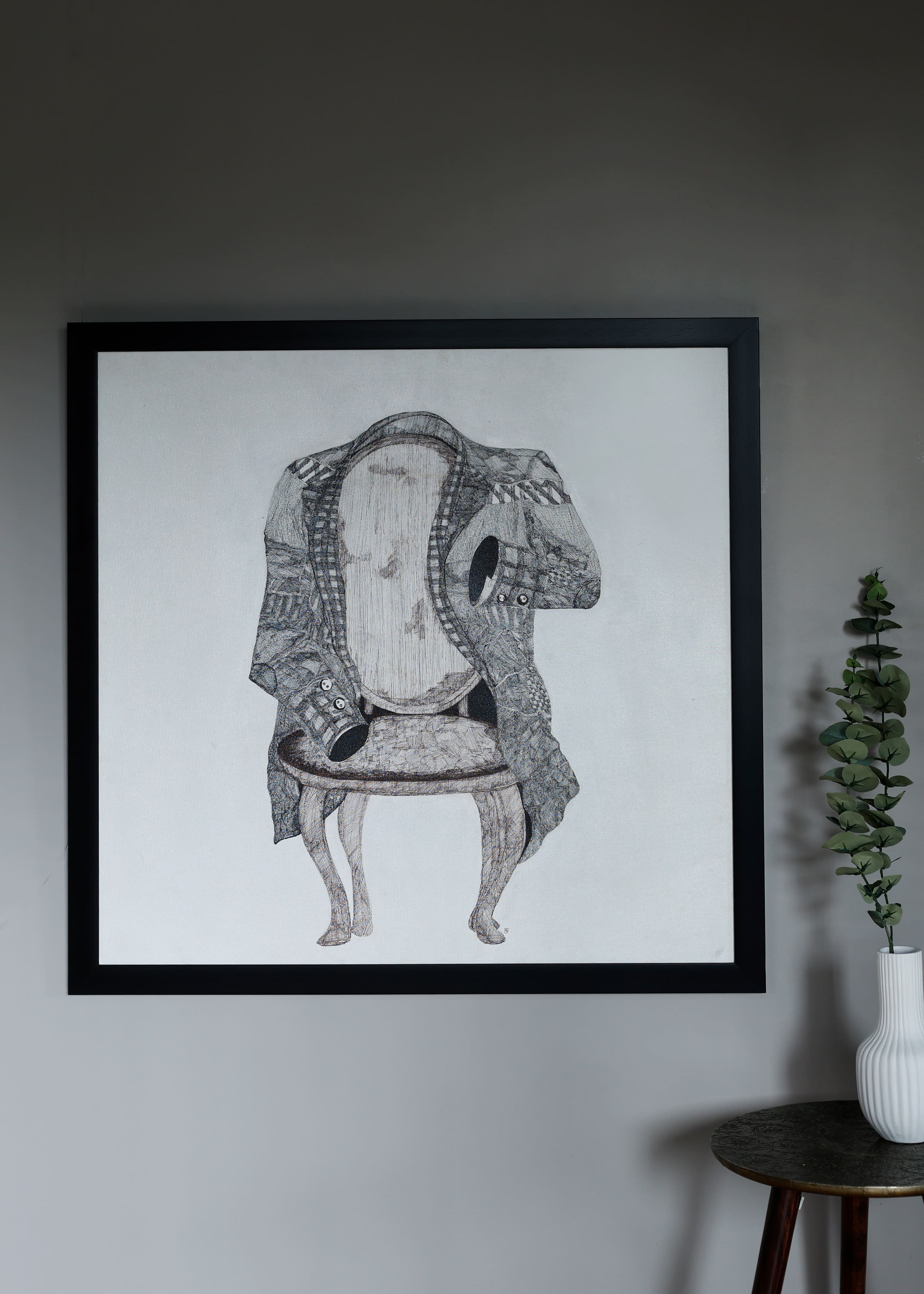 An intricate meditation rendered in fine lines, Aura maps the unseen — the energy, experience, and essence that surround a life lived. Using micron pens on a broad canvas, the composition unfolds like a quiet constellation of memories, emotions, and unspoken thoughts.